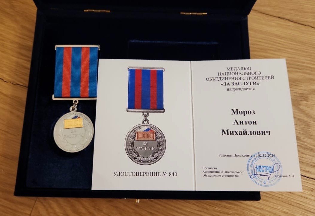 Вице-президент Национального объединения строителей (НОСТРОЙ), Координатор НОСТРОЙ по СЗФО Антон Мороз награждён медалью нацобьединения «За заслуги».