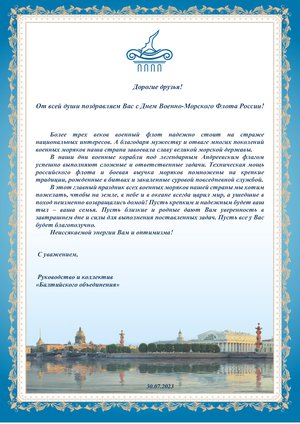 Уважаемые коллеги! Примите самые искренние поздравления с Днем Военно-Морского Флота!
