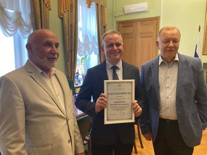 Директор Ассоциации «Петровское объединение строителей» Владимир Быков вручил работникам предприятия благодарности от саморегулируемой организации за добросовестный труд, высокий уровень профессионализма и личный вклад в реализацию ответственных проектов по ремонту и реконструкции объектов представительств консульского корпуса в Санкт-Петербурге.
