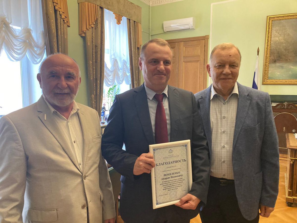 Отдельная благодарность за колоссальный вклад в развитие предприятия от президента Ассоциации «Петровское объединение строителей» Владимира Чмырёва в торжественной обстановке была вручена генеральномe директору ГУП «Инпредсервис» Владимиру Запевалову.